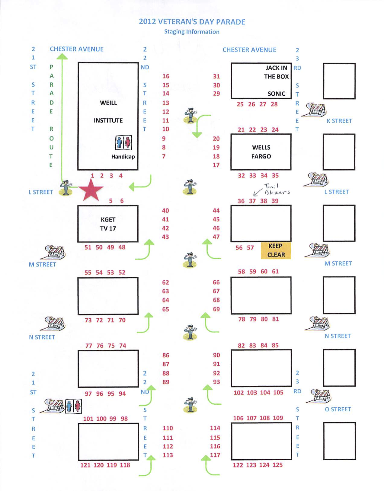 We are Unit 37. We line up on the East side of L Street between 22nd Street and 23rd Street facing South. There is a Staging map and a Parade Route map attached.