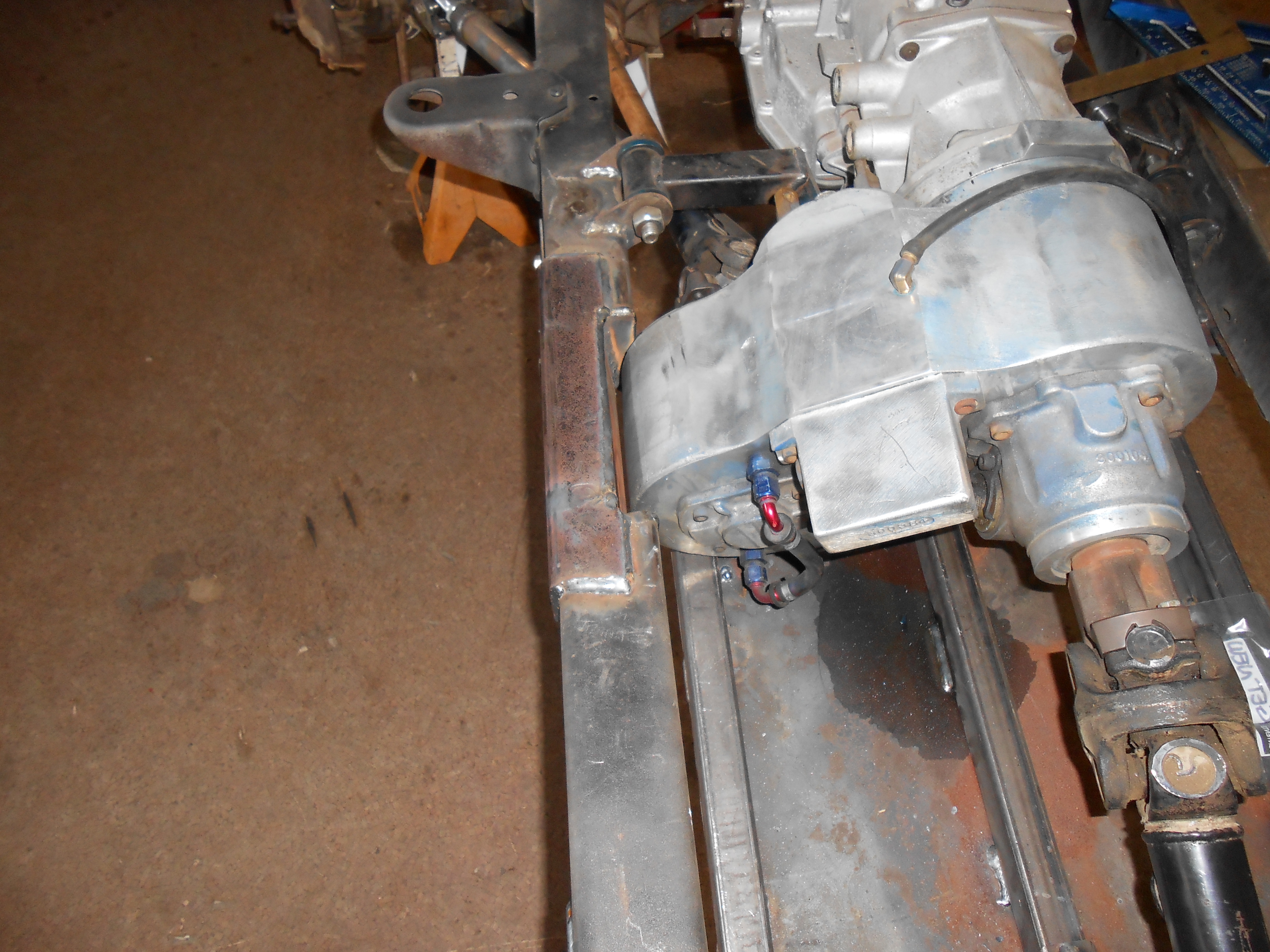 As I was building fabbing everything for the frame , I left out a crucial and interesting tid bit of info regarding the atlas transfer case and the Bronco frame. The Atlas does not fit in it. When you see Broncos with an Atlas look under it and you'll see the Atlas clocked in a low slung position . It simply does not fit in the Frame. A company called Stack was making what was called a "B" box ( B for Bronco ) after market transfer case that was small enough to fit. I tried them and they were very unresponsive with no call back. It worried me so I stayed clear of them settling for the next best thing which is to notch and re-inforce the Bronco frame to clock the Atlas higher.