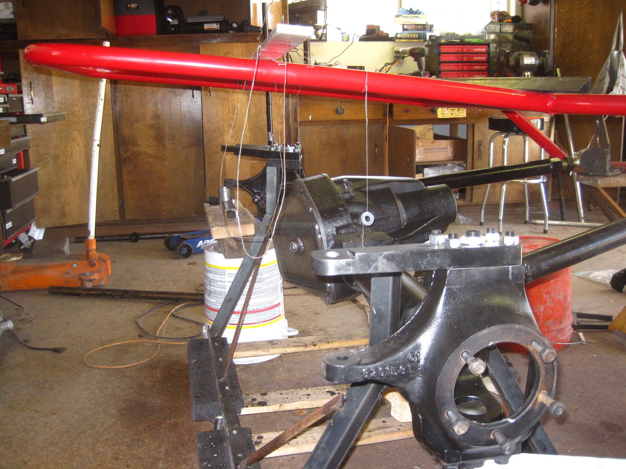 Drive line angle and link mounts , if the bottom link is shorter the driveline angle changes by pointing upward I wanted to get an angle pointing directly at the transfer case yoke then make my links as close to parallel as possible where they mounted to the buggy structure . I limited the driveline angle movement this way. I articulated it after set up in everyway possible it looked good enough to survive so I welded it all up. Check out the 2 harbor freight piano dollies I welded together with angle iron to hold up those heavy ass 60's while I worked with them. Robert used it for his build then Wayne barrowed it from Robert for his build. Hope it still works ,I will need it again soon.