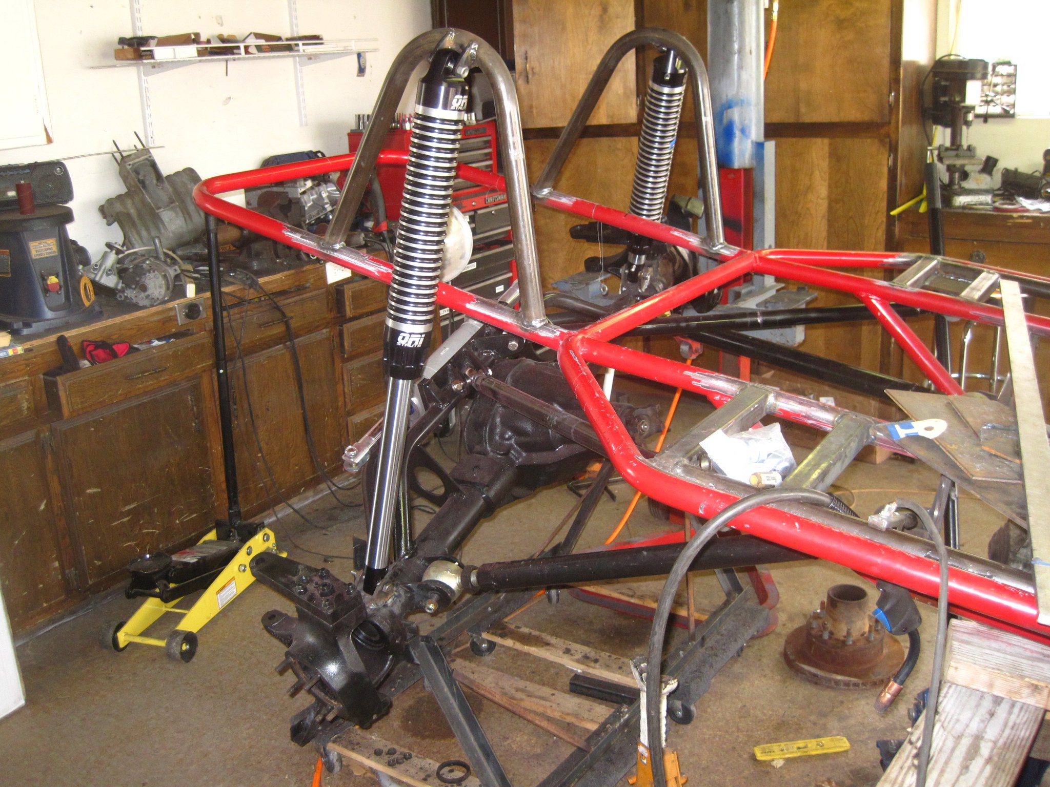 Setting up the rear links , that top link needs clearance, the higher it goes into the substructure of the buggy, the lower the buggy goes to the ground , that's a good thing. I worked hard to get the maximum triangulation on those top links .