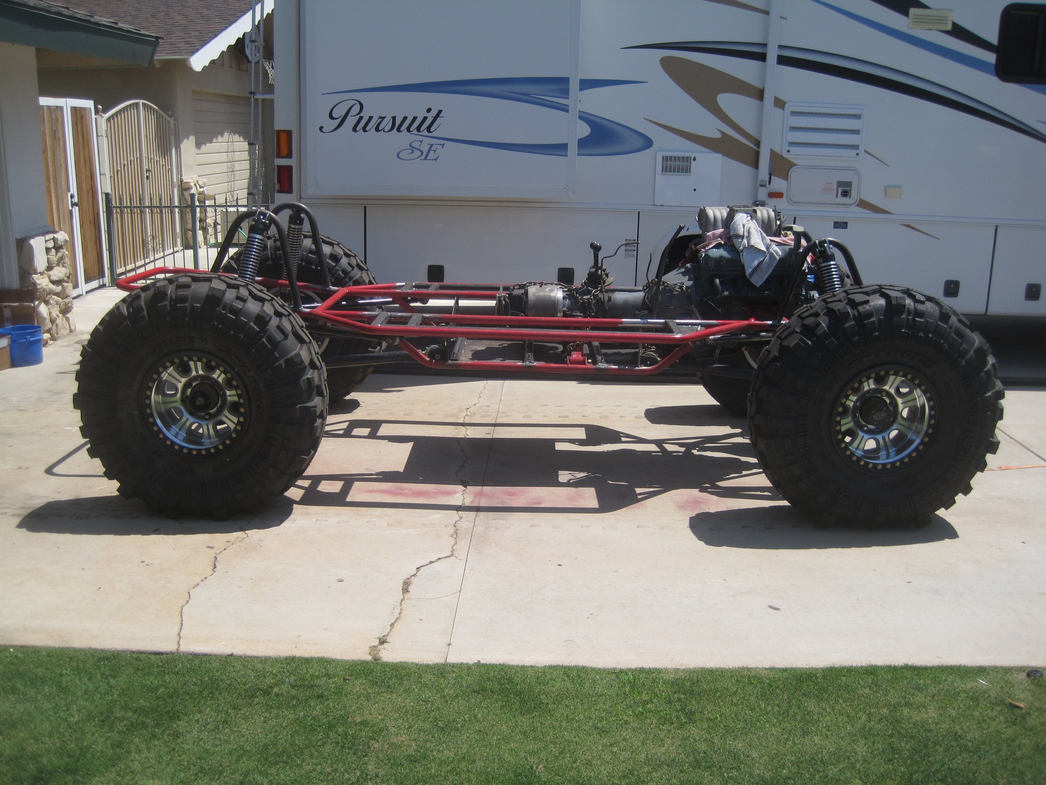 Clearing the links,, motion of travel. Did a 4 link instead of track bar so top links had to clear oil pan, oil filter ect. Axle had to be foreword enough to clear the serpentine belt during articulation, this gave me a few more inches of up travel and helped to lower the roll axis .