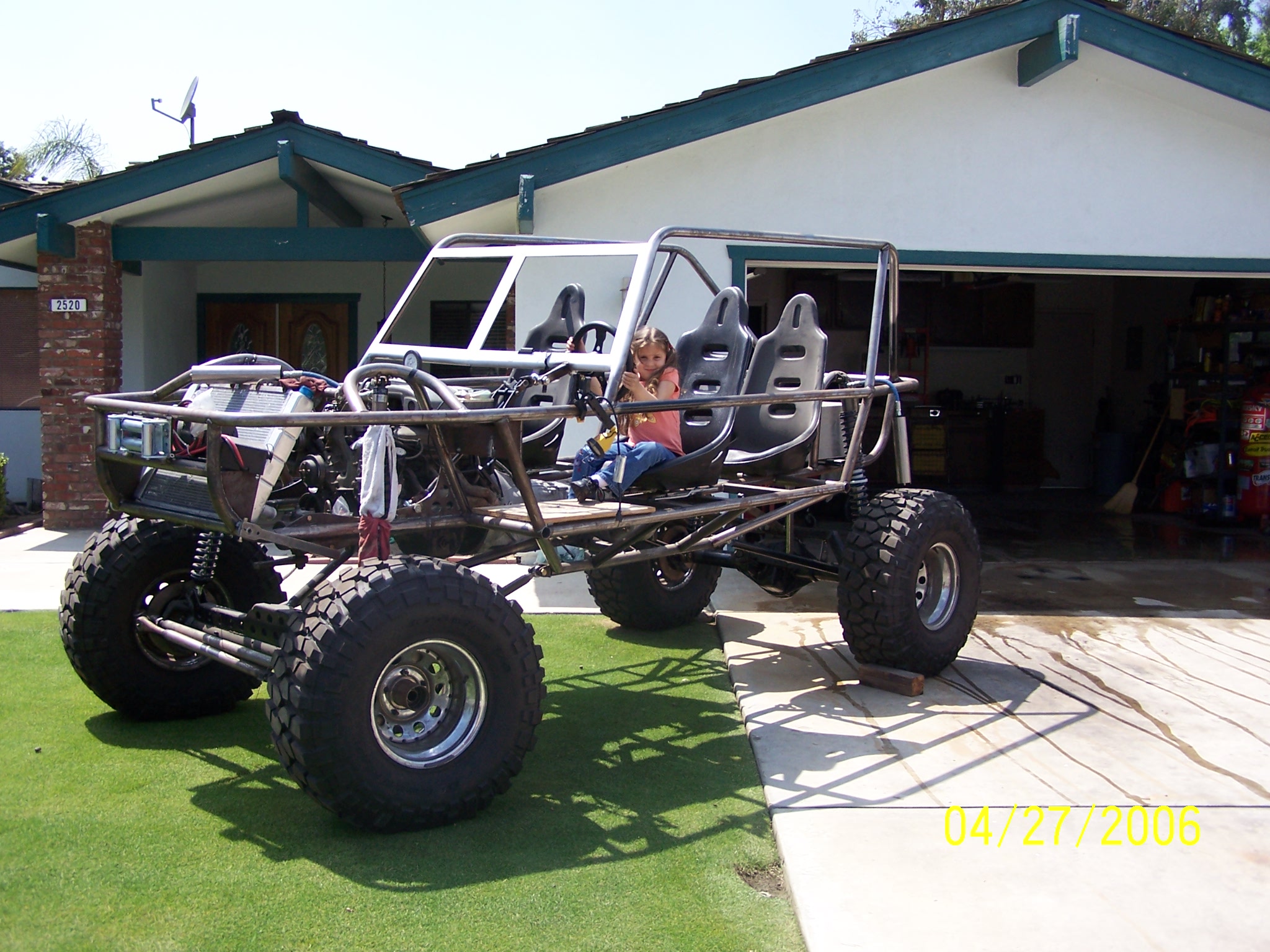 I designed this thing to have a rear radiator, this picture best exemplifies why. I can see what's in front of me better than the old buggy I built. See the pic of Faith my granddaughter behind the wheel