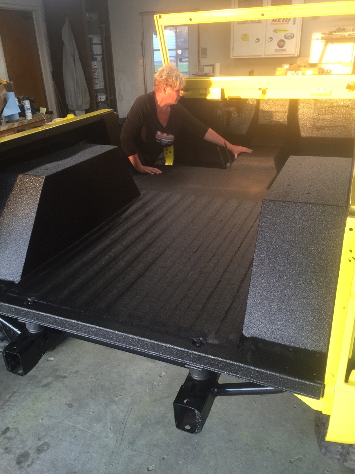 Put in some frost king insulation on the floor from home depot . Dyna mat was way too expensive. Jeff at ARMA coating on Buck Owens Blvd said it would be ok to do it .He regretted it afterword. It didn't stick in some places and he had to re-do one spot. All in all we are happy with it. The insulation will help allot with the engine heat this summer since I have air in this one , it should work allot better.